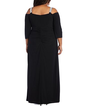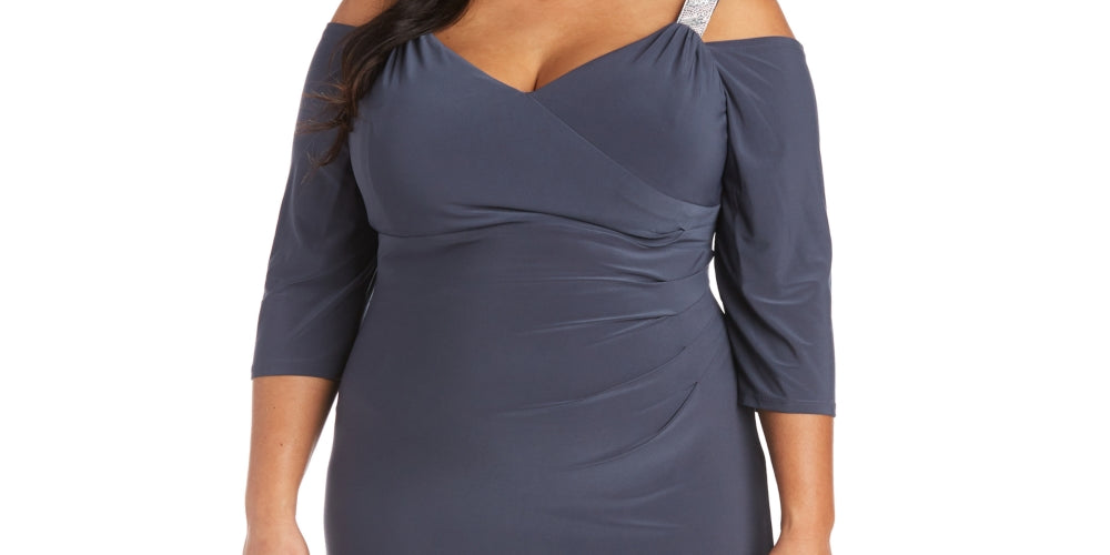 Vestido feminino R & M Richards com decote em V e ombros descobertos, cinza, tamanho 22W