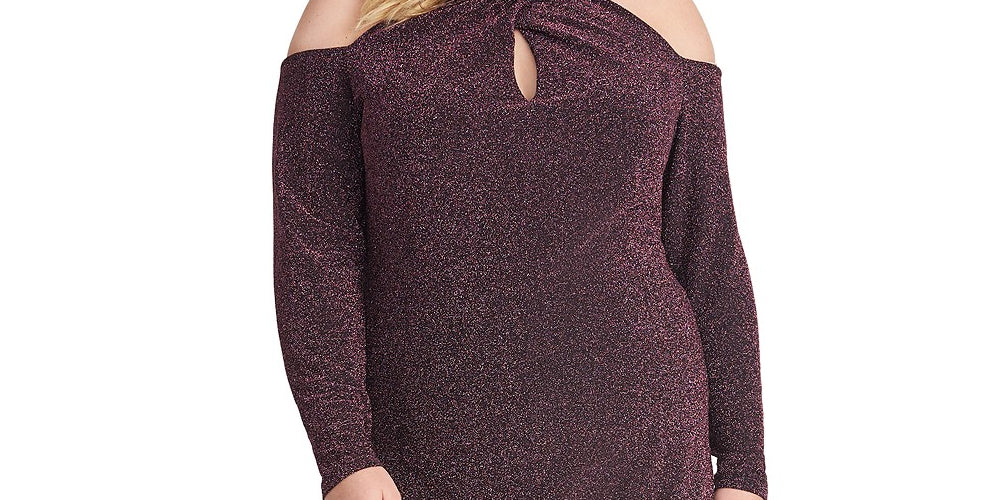 Vestido Halter de Malha Brilhante Plus Size da Rachel Rachel Roy Feminino Roxo Tamanho 14