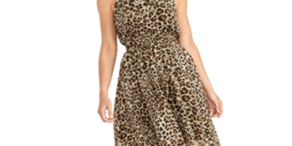 Vestido de festa feminino RACHEL ROY com estampa animal, sem mangas, gola alta, corte MIDI, estilo flare