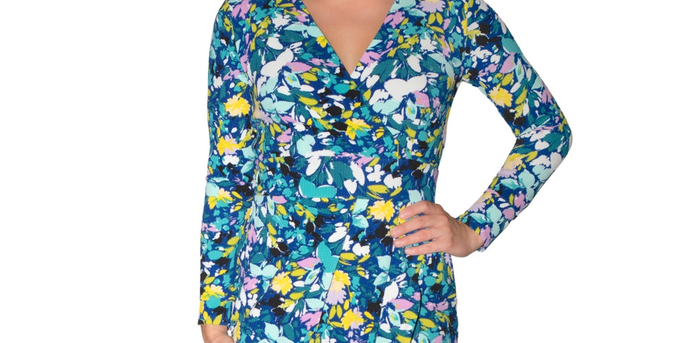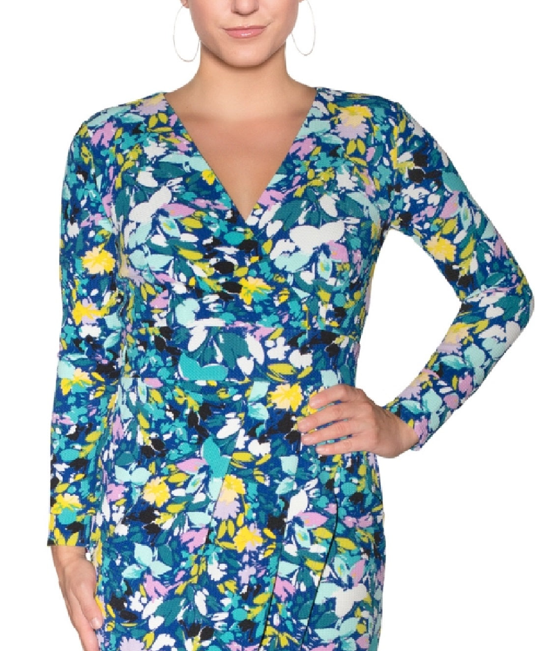 Vestido envelope falso com estampa floral Rachel Roy Feminino Cia Azul Tamanho P