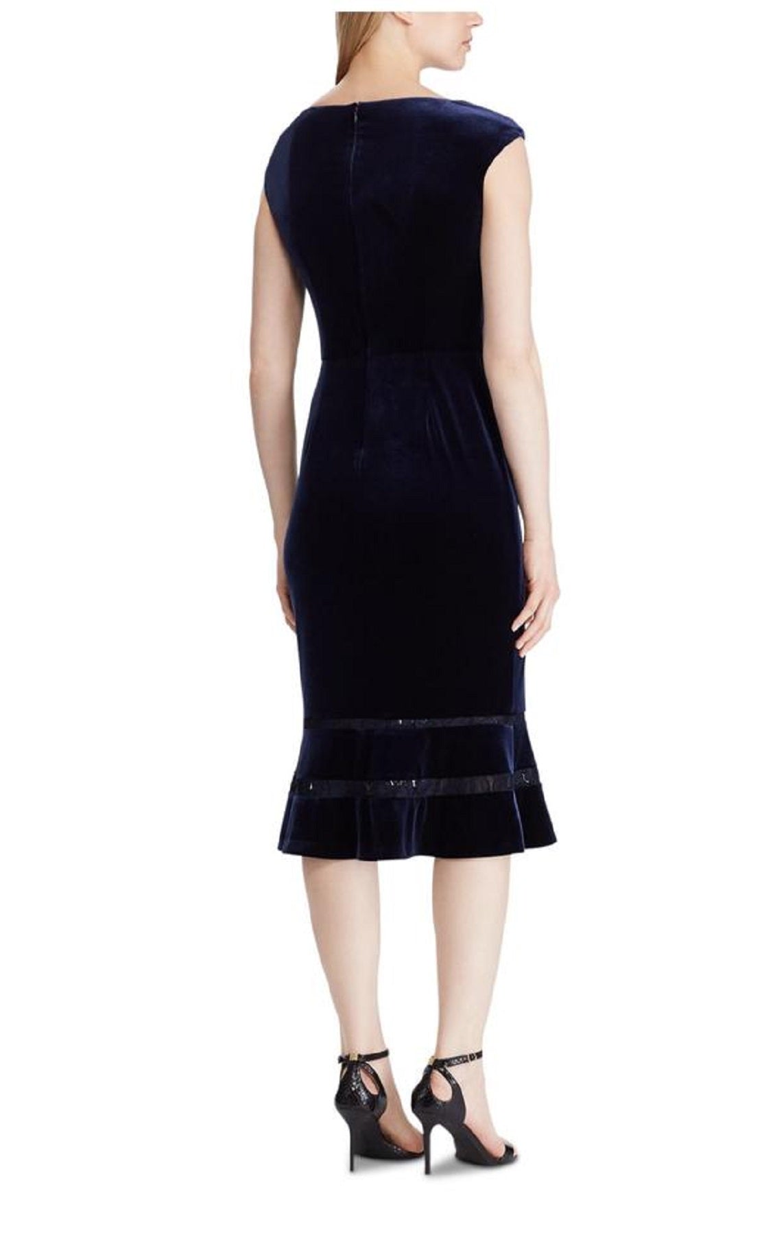 RALPH LAUREN|Estilo; Vestido|Ocasião; Noite|Tamanho; 0|Material; Poliéster|Cor; Azul-marinho|Decote em V