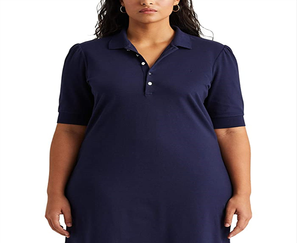 Vestido Ralph Lauren Feminino Azul com Gola e Manga Curta Tamanho 1X