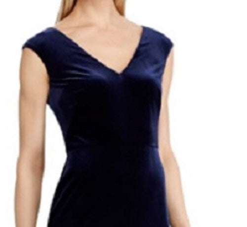 Vestido Ralph Lauren Feminino de Veludo com Renda e Canelado, Azul Marinho, Tamanho 16