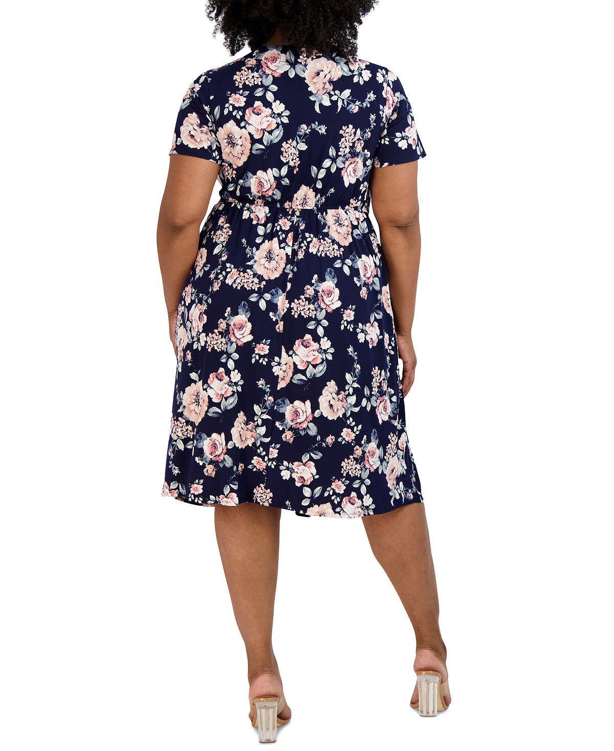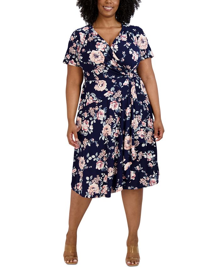 Robbie Bee acentua o corte clássico e a silhueta evasê com franzidos na cintura e um design falso envolvente que valoriza o corpo | refinado e fluido com florais | este vestido plus size será uma linda adição à sua coleção de vestidos. | Malha jersey; Macio e elástico | Sem forro | 1X = 14W-16W | 2X = 18W-20W