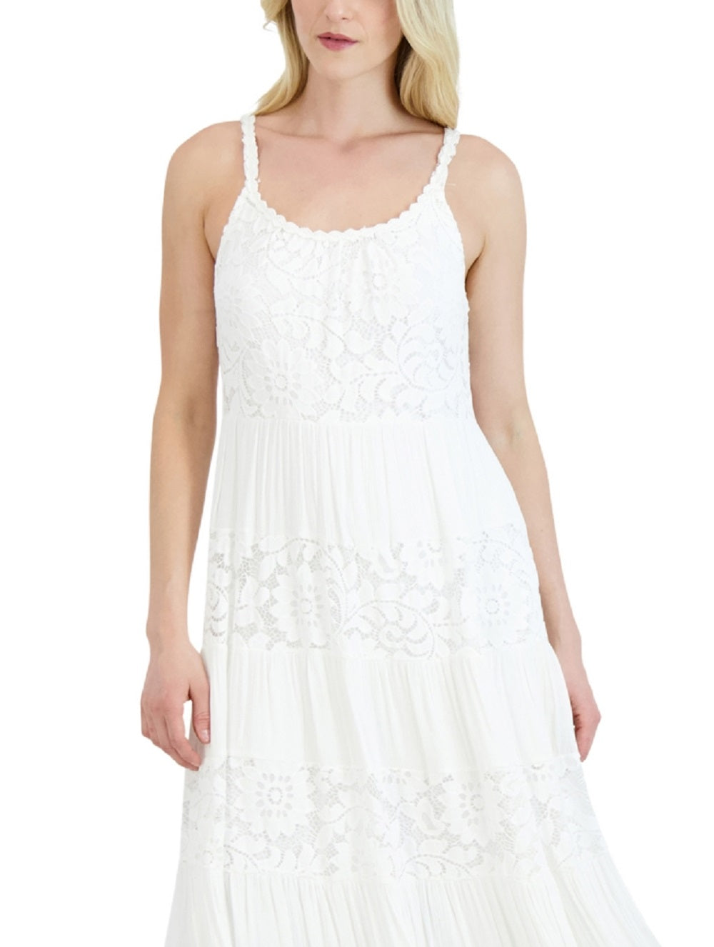 Vestido de renda evasê Robbie Bee feminino, branco, tamanho médio