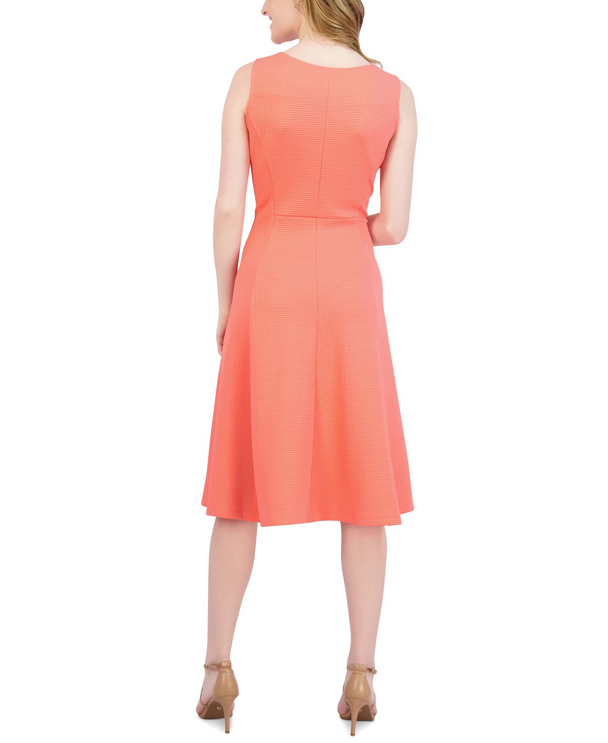 O vestido texturizado sem mangas e estilo flare de Sandra Darren ganha um toque especial com um recorte em formato de buraco de fechadura na frente. | Comprimento aproximado de 112 cm, do centro do pescoço até a bainha | Decote quadrado com recorte em formato de buraco de fechadura; Silhueta justa e estilo flare | Estilo pulôver | Tecido texturizado | PP = 0-2 | P = 2-4