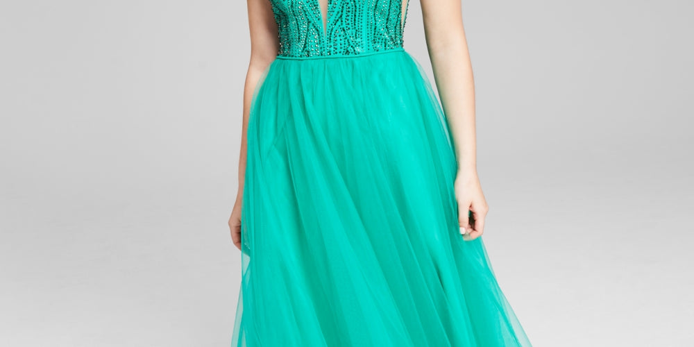 Ouse trazer drama com este look arrasador da Say Yes to the Prom. Um decote profundo e uma saia esvoaçante certamente chamarão a atenção. | Comprimento aproximado de 62 cm, do centro do pescoço até a bainha. O comprimento é baseado no tamanho 7 e varia 1/4 entre os tamanhos. | Vestido formal longo com saia alargada na cintura. | Decote em V profundo; Silhueta de vestido de baile. | Fechamento com zíper nas costas. | Forrado.