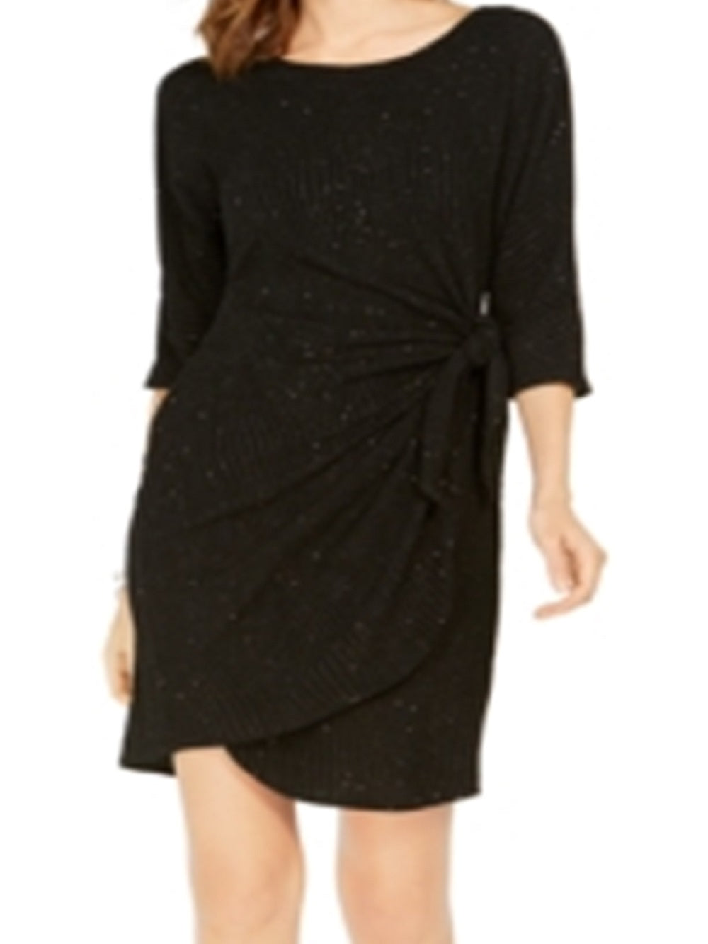 Decorado com glitter texturizado e amarrado na lateral para um toque sedutor | o estilo envelope falso deste vestido pequeno da Robbie Bee cruza a saia, tornando-o um item essencial e chique do guarda-roupa. | Aproximadamente 91 cm de comprimento, do centro do pescoço até a bainha. O comprimento é baseado no tamanho pequeno e varia de 1/2 entre os tamanhos. | Projetado para se ajustar e valorizar pessoas de 1,62 m ou menos. | Decote redondo; corte reto com envelope falso. | Estilo sem alças. | Mangas na altura do cotovelo.