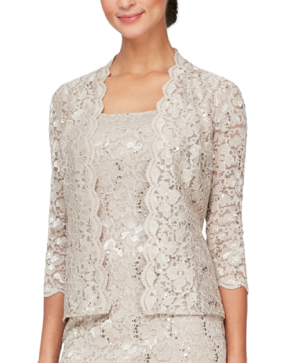 Conjunto de jaqueta de renda e vestido midi feminino SL Fashions, 2 peças, marrom, tamanho 14, pequeno