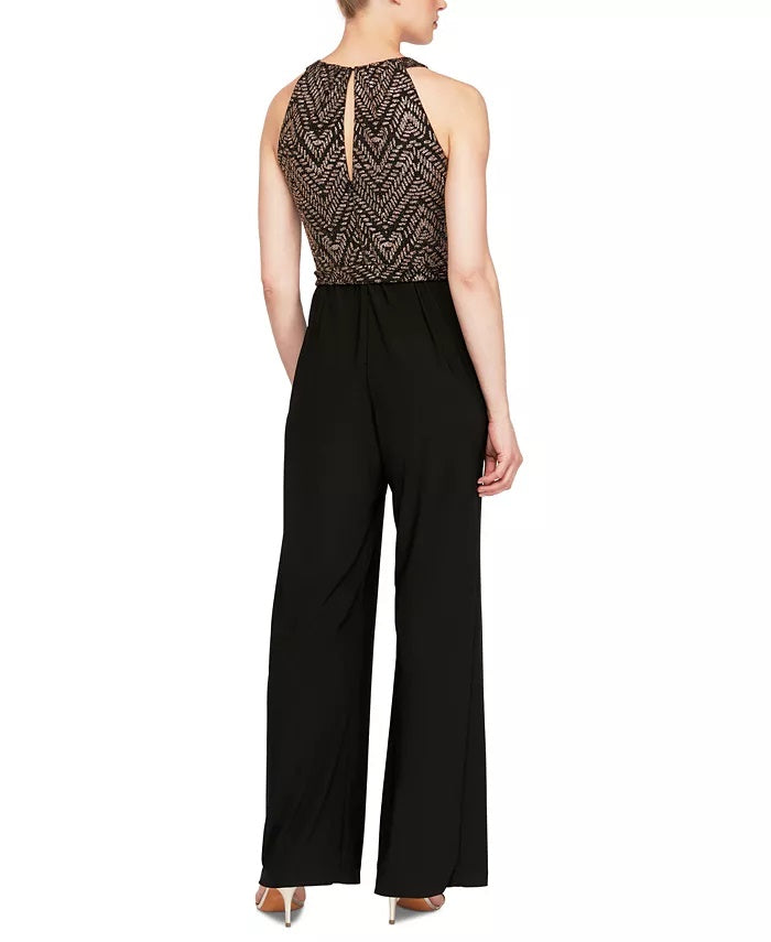 Macacão metálico com cinto feminino SL Fashions, preto, tamanho 8