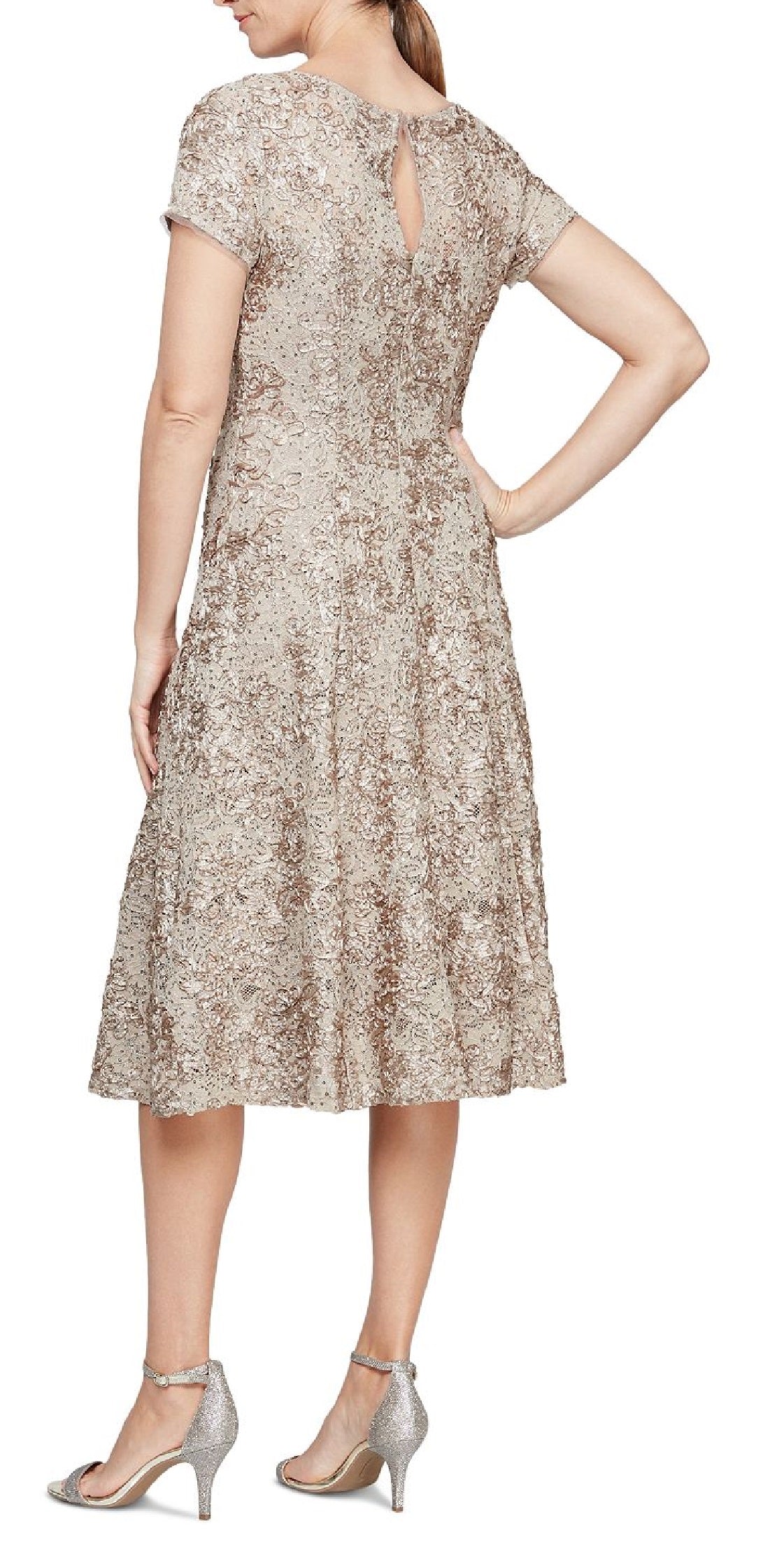 Brilhe com este vestido evasê bordado e com lantejoulas da SL Fashions. | Aproximadamente 114 cm de comprimento, do centro do pescoço até a barra. O comprimento é baseado no tamanho 38. | Ajustado no busto e na cintura; a saia evasê estruturada assenta ligeiramente sobre os quadris. | Renda; Textura delicada e leve. | Decote redondo. | Zíper traseiro oculto com fecho de colchete.