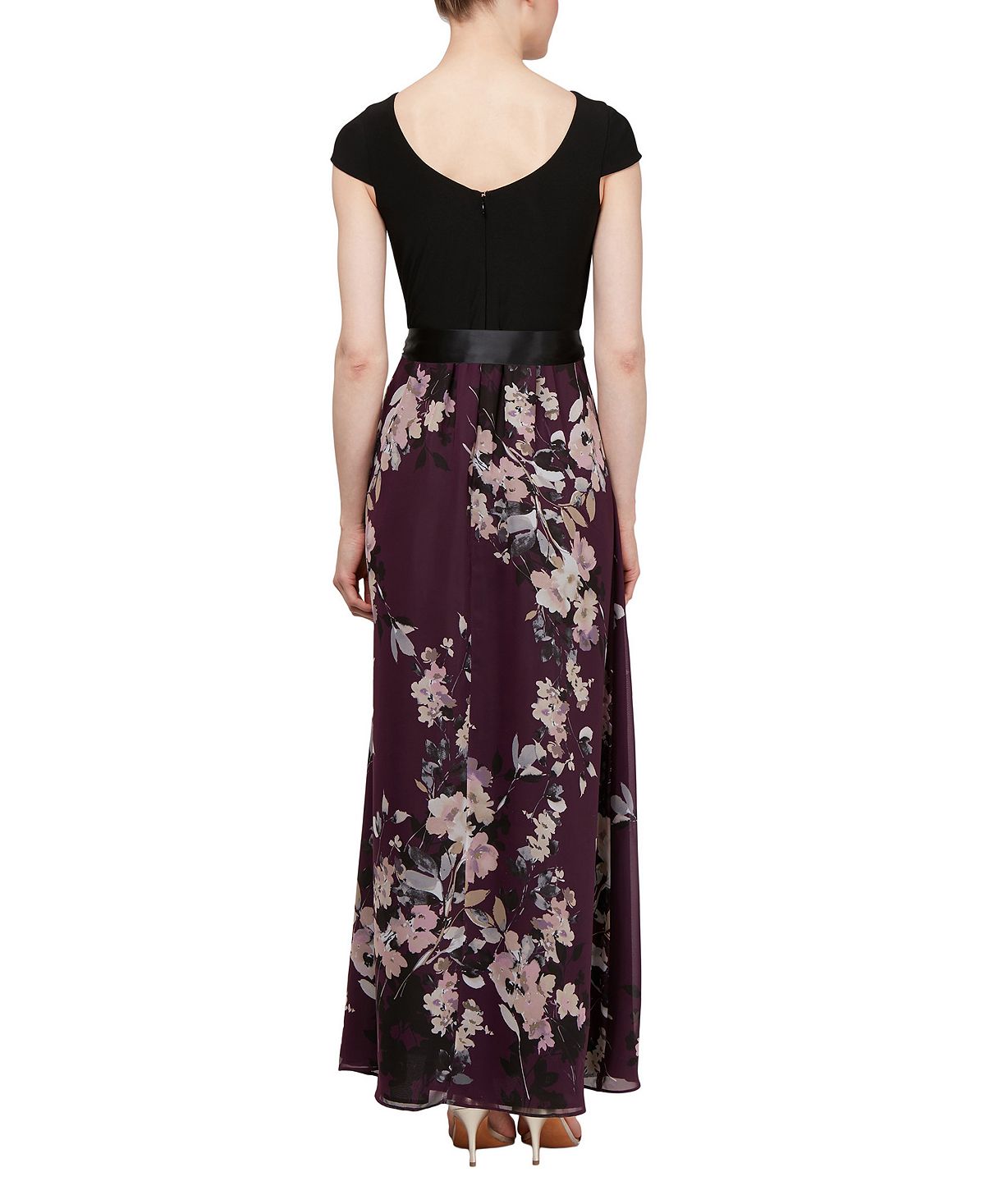 A maneira perfeita de dar um toque especial ao seu look noturno. A SL Fashions combina cores lisas e estampadas com perfeição neste elegante vestido | finalizado com uma gravata de cetim que marca a cintura. | Comprimento aproximado de 52 cm, do centro do pescoço até a bainha. O comprimento é baseado no tamanho 8 e varia 1/4 entre os tamanhos | Decote canoa; Silhueta do vestido | Fecho de zíper invisível nas costas | Mangas curtas | Saia floral; gravata na cintura
