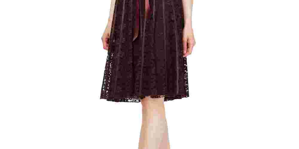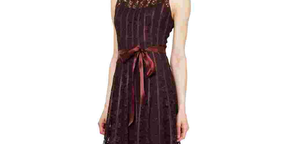 Vestido de renda evasê sem mangas com cinto e cinto SL Fashions feminino, tamanho 6, marrom
