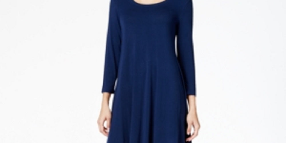 Decote redondo | Mangas três quartos | Silhueta fluida | Acabamento no joelho | Tamanho generoso; se estiver entre dois tamanhos, considere um menor