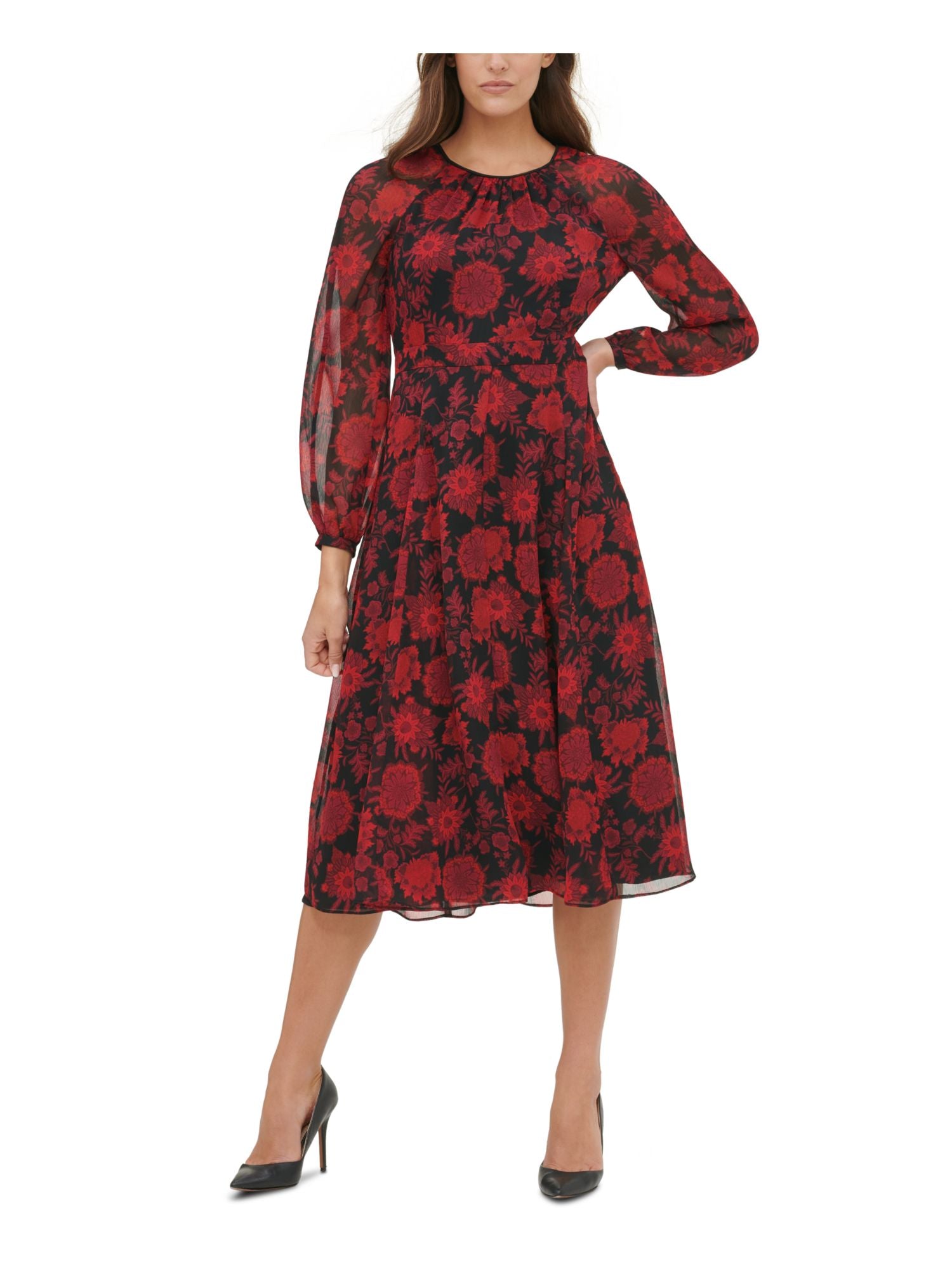 Vestido feminino Tommy Hilfiger floral chiffon midi preto tamanho 2