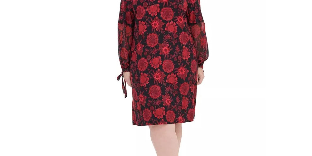 Aproximadamente 91 cm de comprimento, do centro da gola até a bainha. O comprimento é baseado no tamanho 46L e varia 6 mm entre os tamanhos. | Gola redonda; corte reto | Fecho de zíper nas costas | Mangas longas de chiffon; amarração nos punhos | Sem forro | Poliéster/elastano; manga: poliéster