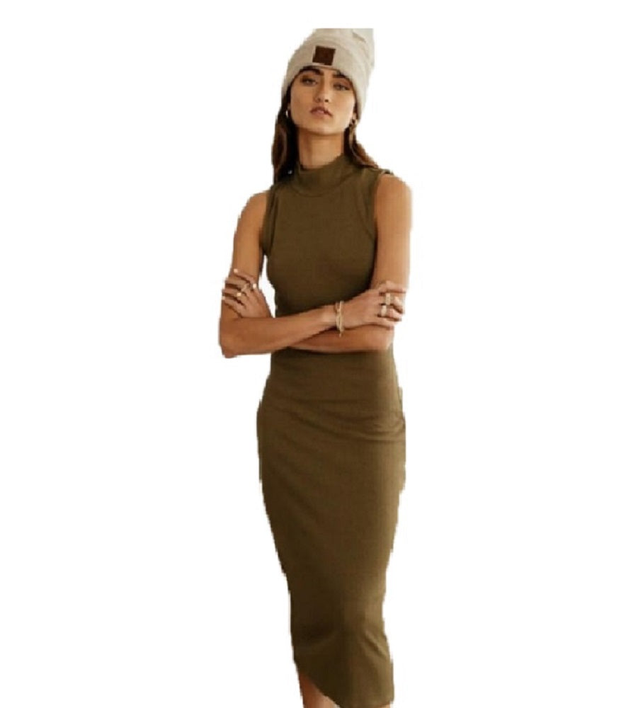 Vestido midi justo, gola alta, sem mangas, canelado, malha elástica, material 95% poliéster | 5% elastano, lavagem à máquina com água fria | 5 Médio (6-8) 32-35 46 | 5 Grande (10-12) 34-38 47 Extra Grande (14-16) 36-40 47 | 5 Nossa equipe de vendas online mede cada tamanho manualmente | Para informações mais específicas sobre o produto