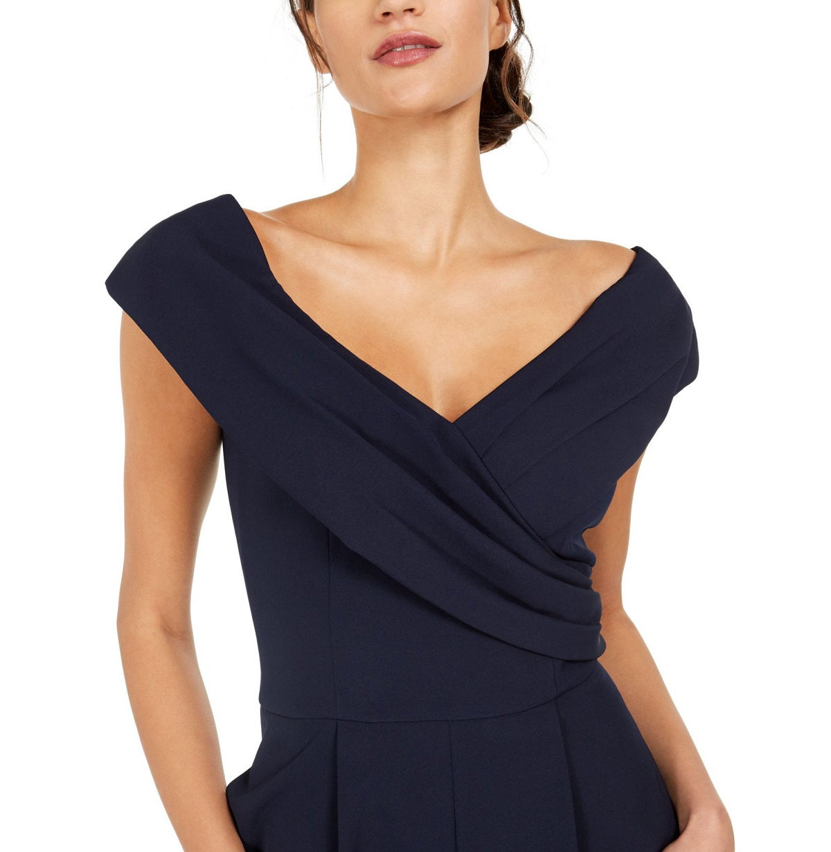 Macacão feminino Vince Camuto com manga curta, decote em V e pernas largas, azul, tamanho 4