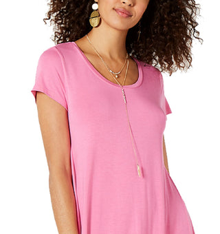 Vestido feminino estilo & co, manga curta, corte A, rosa, tamanho PP