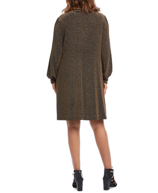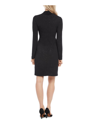 Vestido de noite feminino Karen Kane com glitter, manga longa, decote Queen Anne, acima do joelho, bainha, tamanho X-S
