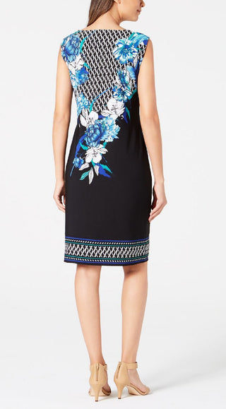 Vestido tubinho com decote em V feminino JM Collection, preto, tamanho médio
