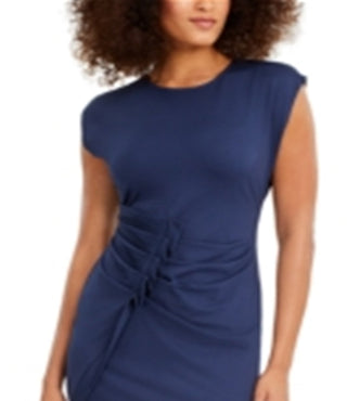 Vestido midi de cetim franzido feminino INC International Concepts, azul, tamanho grande