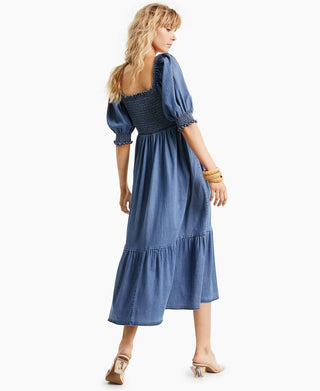 Vestido midi de crepe com babados Betsy & Adam feminino, azul, tamanho 4