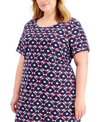 Vestido camiseta feminino Karen Scott com mangas divididas, azul, tamanho 1X