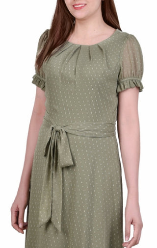 Vestido feminino NY Collection com manga curta e cinto, estampado com bolinhas suíças, tamanho pequeno, extragrande