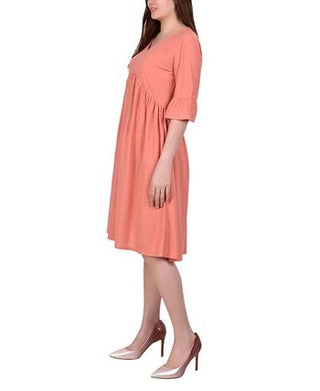 Vestido feminino NY Collection com manga cotovelo e bolinhas suíças, tamanho laranja, pequeno, extragrande
