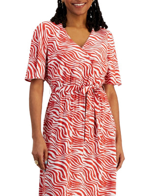 Vestido feminino NY Collection com manga curta e cinto e bolinhas suíças, laranja, tamanho pequeno G