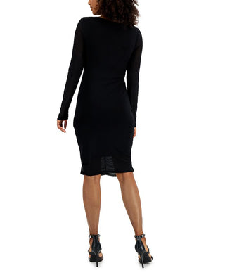 Vestido de malha franzido com decote em V feminino da INC International Concepts, preto, tamanho médio