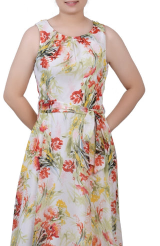 Vestido feminino de chiffon sem mangas com cinto e mangas compridas, tamanho pequeno e marrom, da coleção NY