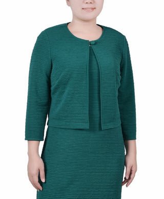 Conjunto de vestido texturizado de duas peças com manga 3/4 feminino NY Collection, verde, tamanho 14, pequeno