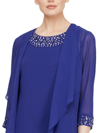 Vestido tubinho sem mangas com decote em contas e jaqueta SL Fashions feminino, tamanho 14, azul