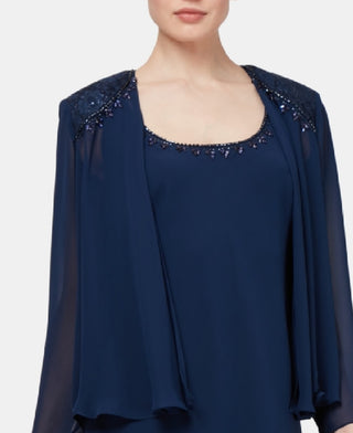Vestido e jaqueta SL Fashions feminino com bainha em camadas e detalhes em azul, tamanho 8