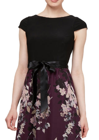 Vestido feminino SL Fashions com saia floral e manga curta, roxo, tamanho 8