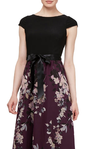 Vestido longo floral misto SL Fashions feminino, roxo, tamanho 10