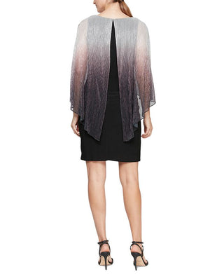 Jaqueta feminina SL Fashions com 2 peças e vestido midi em camadas, cinza, tamanho 14, pequeno