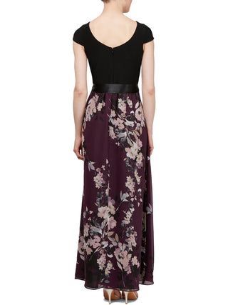 Vestido longo feminino SL Fashions com saia floral alta e baixa, preto, tamanho 4