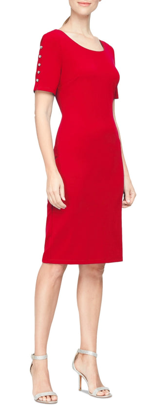 Vestido tubinho com mangas e contas SL Fashions feminino, vermelho, tamanho 12