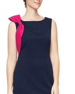 Vestido tubinho com detalhe de laço SL Fashions feminino, azul, tamanho 16