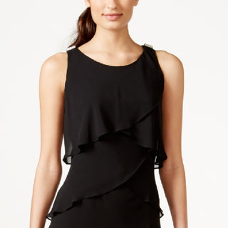 Vestido de chiffon em camadas feminino SL Fashions, preto, tamanho 16