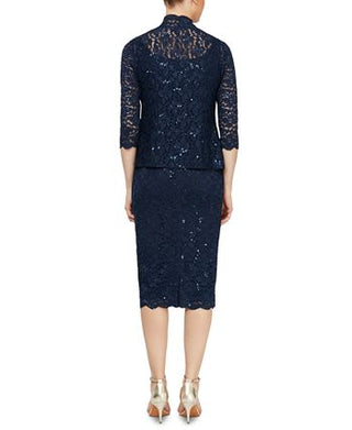 Conjunto de jaqueta de renda e vestido midi feminino SL Fashions, 2 peças, azul, tamanho 14