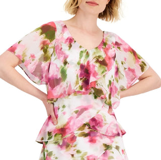 Vestido feminino com estampa floral e camadas SL Fashions, branco, tamanho 18