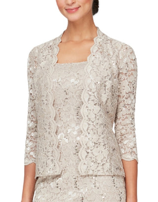 Conjunto de jaqueta de renda e vestido midi feminino SL Fashions, 2 peças, marrom, tamanho 14, pequeno