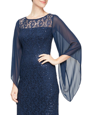 Vestido de renda ilusionista feminino SL Fashions azul tamanho 10