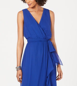 Vestido longo feminino SL Fashions com sobrepeliz alto e baixo, azul, tamanho 6