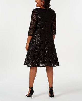 Vestido de renda com lantejoulas SL Fashions feminino, preto, tamanho 18W