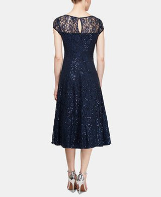 Vestido midi de renda com lantejoulas SL Fashions feminino, azul, tamanho 6